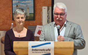 Mit einem herzlichen Dank an alle Helfer und Unterstützer schloss der 2. Vorsitzende Stephan Debes die Veranstaltung. „Es ist eine wichtige Aufgabe und es macht auch viel Spaß. Es ist schön, anderen zu helfen“, so Debes. Das Internetcafé sei für die Besucherinnen und Besucher nicht nur ein Ort, um zu lernen, sondern auch ein Gemeinschaftsort, führte Debes aus: „Bei vielen wohnen die Kinder woanders, die Enkel sind nicht da – die Leute sind sehr dankbar, wenn jemand da ist, mit dem sie sich unterhalten können und die ihnen helfen.“